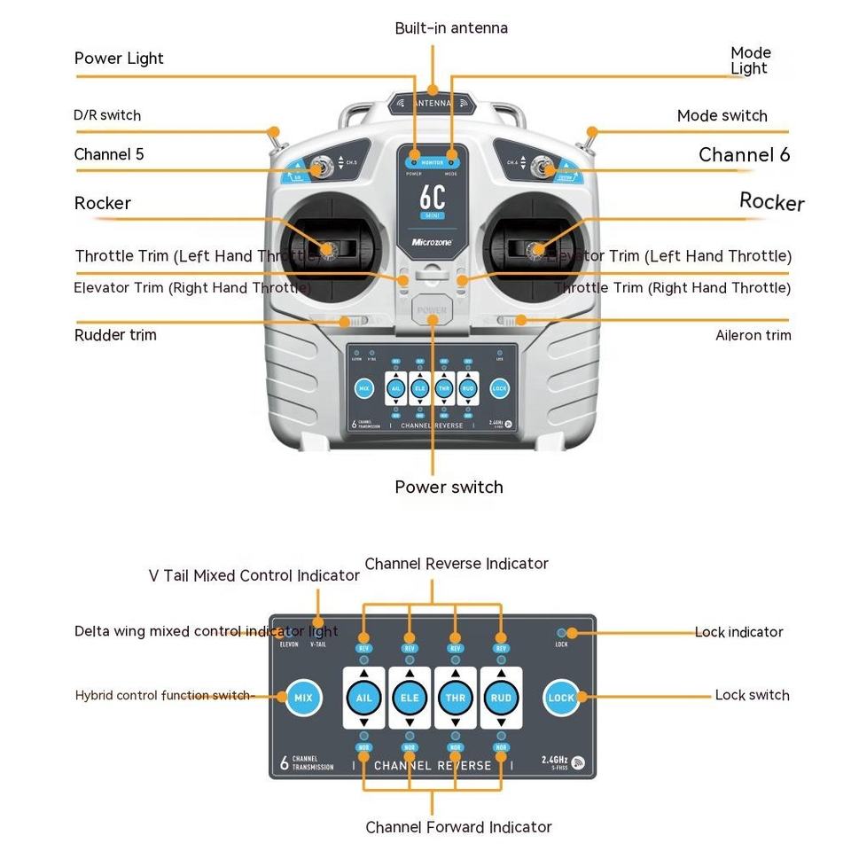 ไมโครโซน MC6C มินิ V2 2.4G 6CH คอนโทรลเลอร์เครื่องส่งสัญญาณพร้อมตัวรับสัญญาณระบบวิทยุสำหรับเครื่องบิน RC โดรน มัลติโรเตอร์ เฮลิคอปเตอร์ เรือ