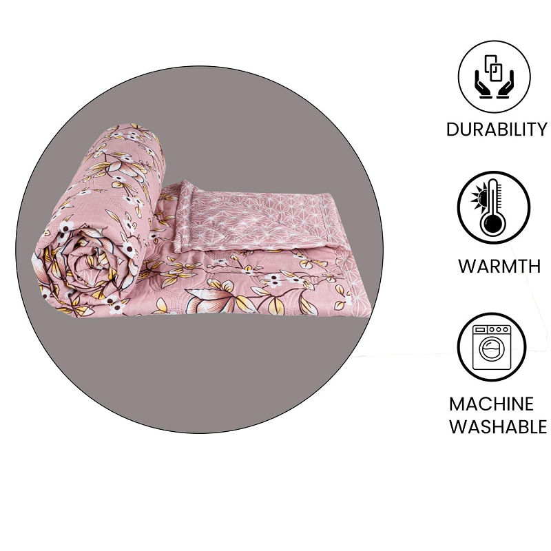 ผ้าคลุมเตียงไมโครไฟเบอร์220 GSM นุ่มพิเศษน้ำหนักเบาและระบายอากาศผ้าห่มนวมสำหรับทุกฤดูที่นอนสบายสีชมพูลายดอกไม้