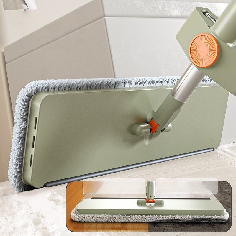 Microfiber Flat Mop with Detachable Steel Pole Hand-Free Household Cleaning Durable Chenille Cloth Mop Head with Dryer