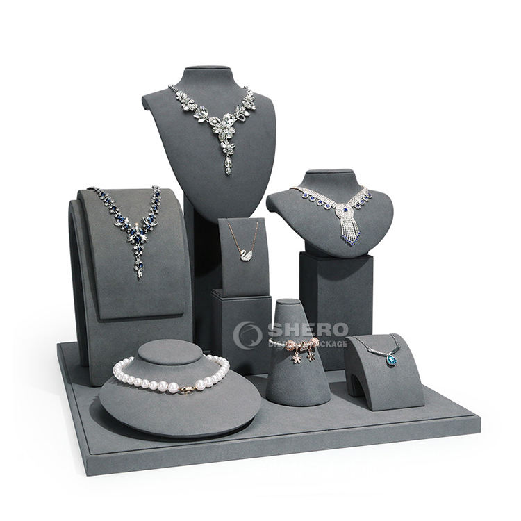 ขาตั้งโชว์เครื่องประดับไมโครไฟเบอร์ ที่วางแหวน ที่แขวนต่างหู ขาตั้งแหวนและเครื่องประดับ พร้อมฐานโลหะ