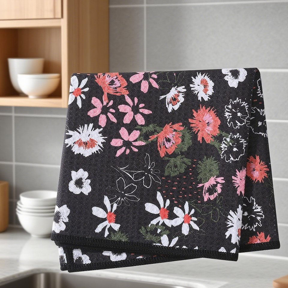 ผ้าขนหนูไมโครไฟเบอร์สำหรับห้องครัวผ้าเช็ดจานพิมพ์ดิจิทัลลายดอกไม้ดูดซับได้ดีเป็นมิตรต่อสิ่งแวดล้อม