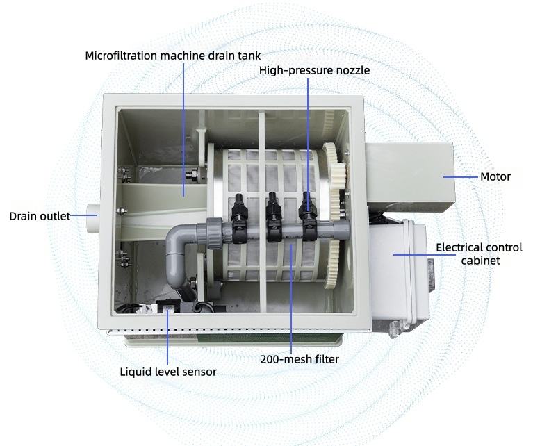 เครื่องกรองไมโครฟิลเตรชั่นสำหรับบ่อปลาคาร์ฟ เครื่องกรองตู้ปลา ตู้เลี้ยงปลาทอง เครื่องกรองแบบดรัมหมุนสำหรับน้ำเสีย และเครื่องกรองสำหรับการเพาะเลี้ยงสัตว์น้ำ