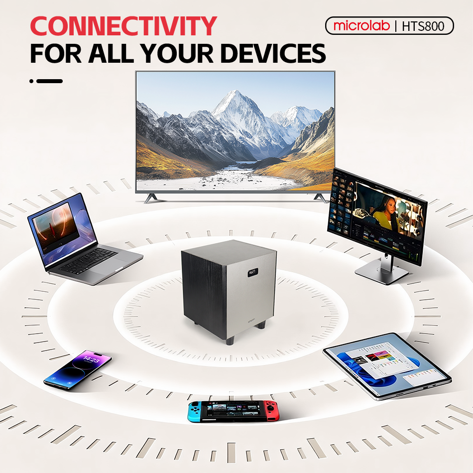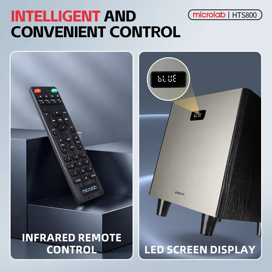 ระบบโฮมเธียเตอร์ Microlab HTS800 5.1 แชนแนล ซับวูฟเฟอร์ 8 นิ้ว กำลังขับ 180 วัตต์ RMS เสียงเบสหนักแน่น สำหรับโทรศัพท์มือถือ ให้ประสบการณ์ภาพยนตร์ที่สมจริง