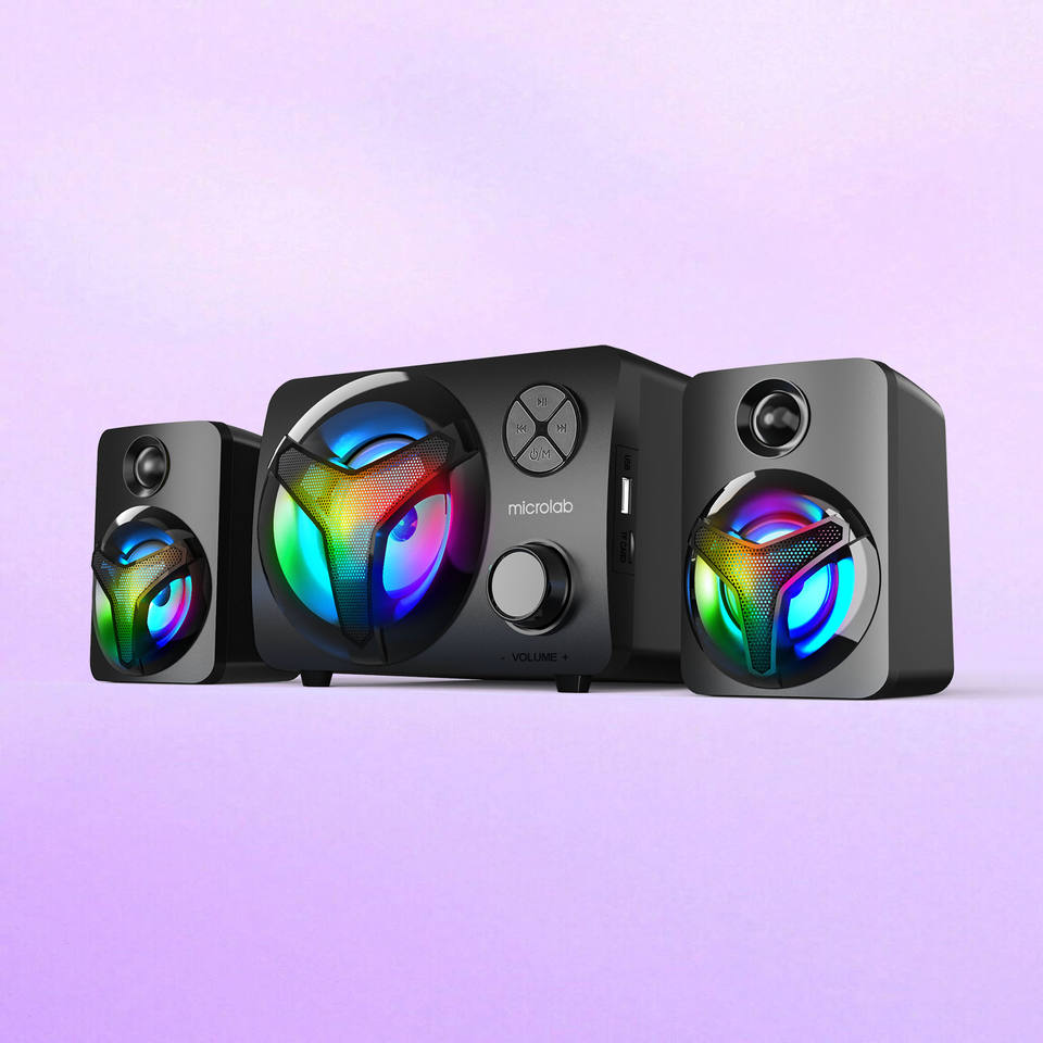 Microlab กล่องเสียง PC ลำโพงเดสก์ท็อปซับวูฟเฟอร์, ลำโพงไฟ LED สีสดใสลำโพงคอมพิวเตอร์เกม U210