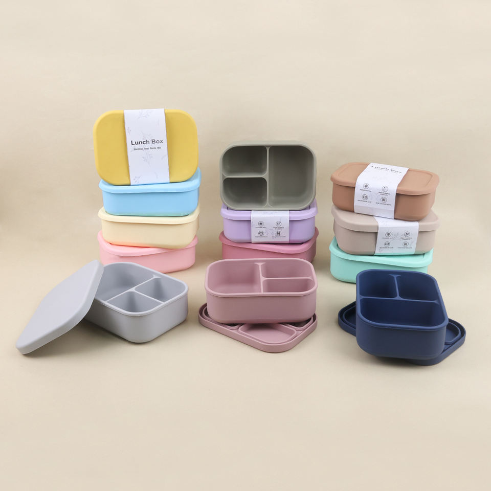 ชุดกล่องอาหารกลางวันสำหรับเด็กนักเรียนมี3ช่องกล่องซิลิโคนกล่องอาหารกลางวันปลอดภัยไมโครเวฟใส่อาหาร
