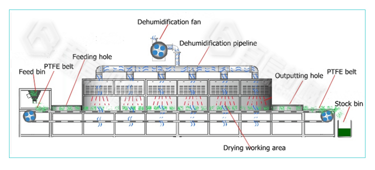 เครื่องอบแห้งไมโครเวฟแบบต่อเนื่องเครื่องอบแห้งแบบใบแป้งผัก