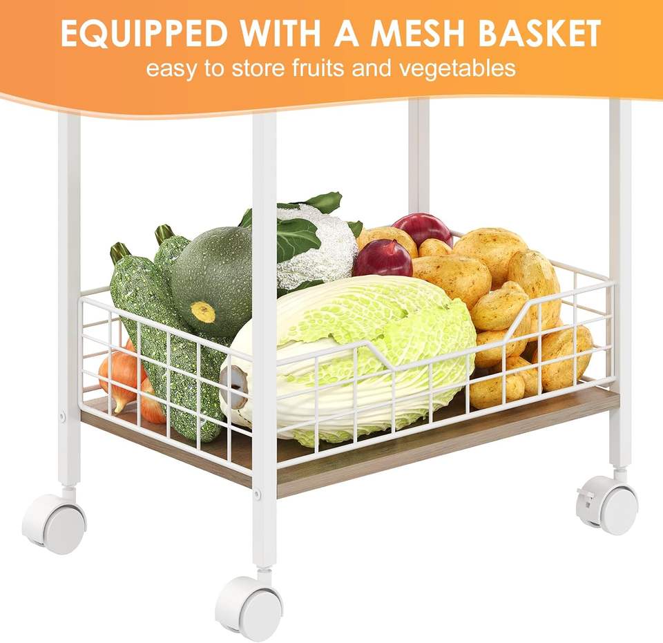 รถเข็นไมโครเวฟพร้อมที่เก็บของชั้นวางในครัวแบบหมุนสามชั้นพร้อมตะกร้าบาร์กาแฟชั้นวางเบเกอรี่เกาะขนาดเล็ก
