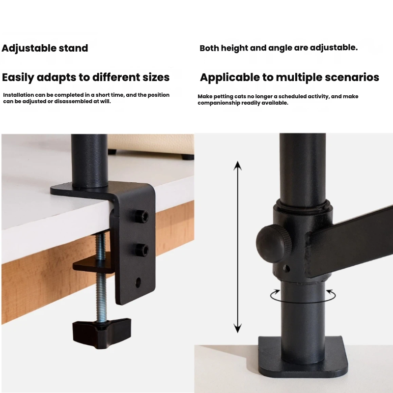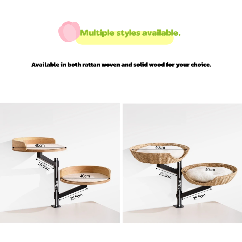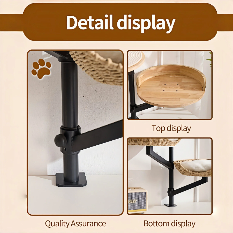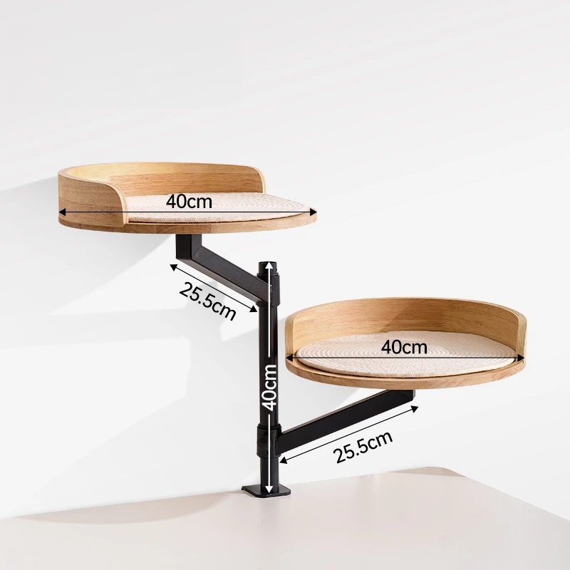 เตียงแมวไม้ยางพาราปรับระดับได้สไตล์มิดเซ็นจูรี่ เกรด ENF พร้อมเบาะเชือกฝ้ายทอมือ ใช้เป็นเตียงแมวแบบตั้งโต๊ะได้