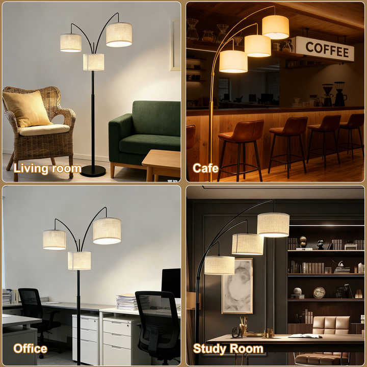 โคมไฟตั้งพื้นทรงโค้งสไตล์กลางศตวรรษ หลอดไฟ LED 3 ดวง ปรับระดับได้ โครงโลหะ โคมโลหะ CRI สูง 90 ปรับความสว่างได้ เหมาะสำหรับห้องนอน ห้องนั่งเล่น สำนักงาน