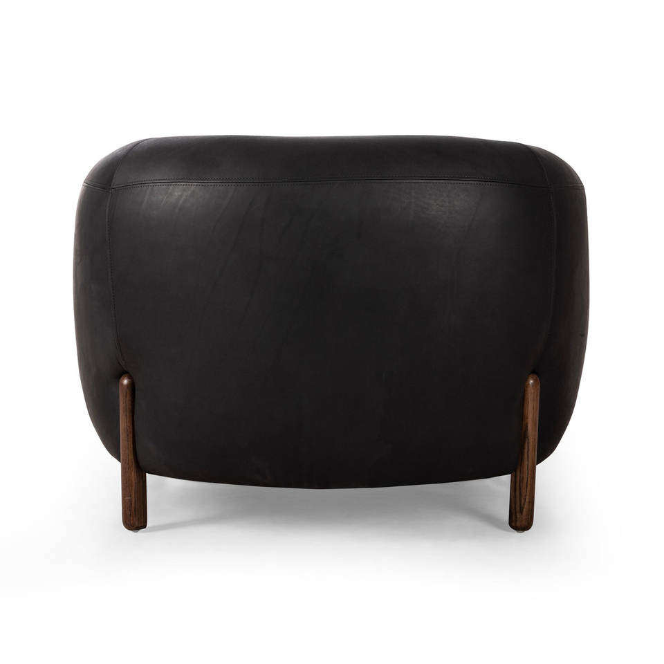Mid Century Armchair with Channel Tufted Leather Upholstery Modern bulky shape Chair for Bedroom, Living Room or Office