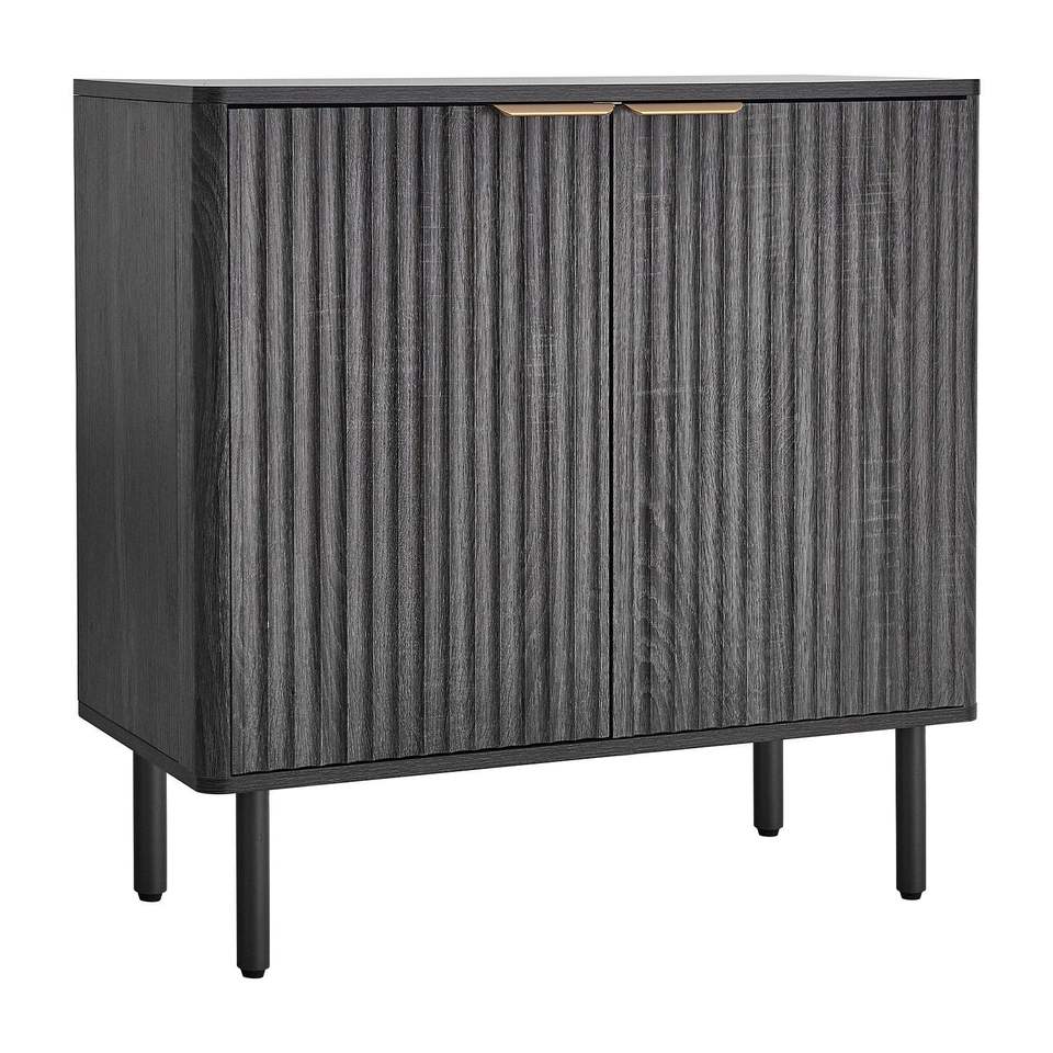 ตู้เก็บของแบบ 2 ชั้น สไตล์มิดเซ็นจูรี่ ลายฟลูต พร้อมบานประตูแบบบาร์น ดีไซน์ทันสมัย