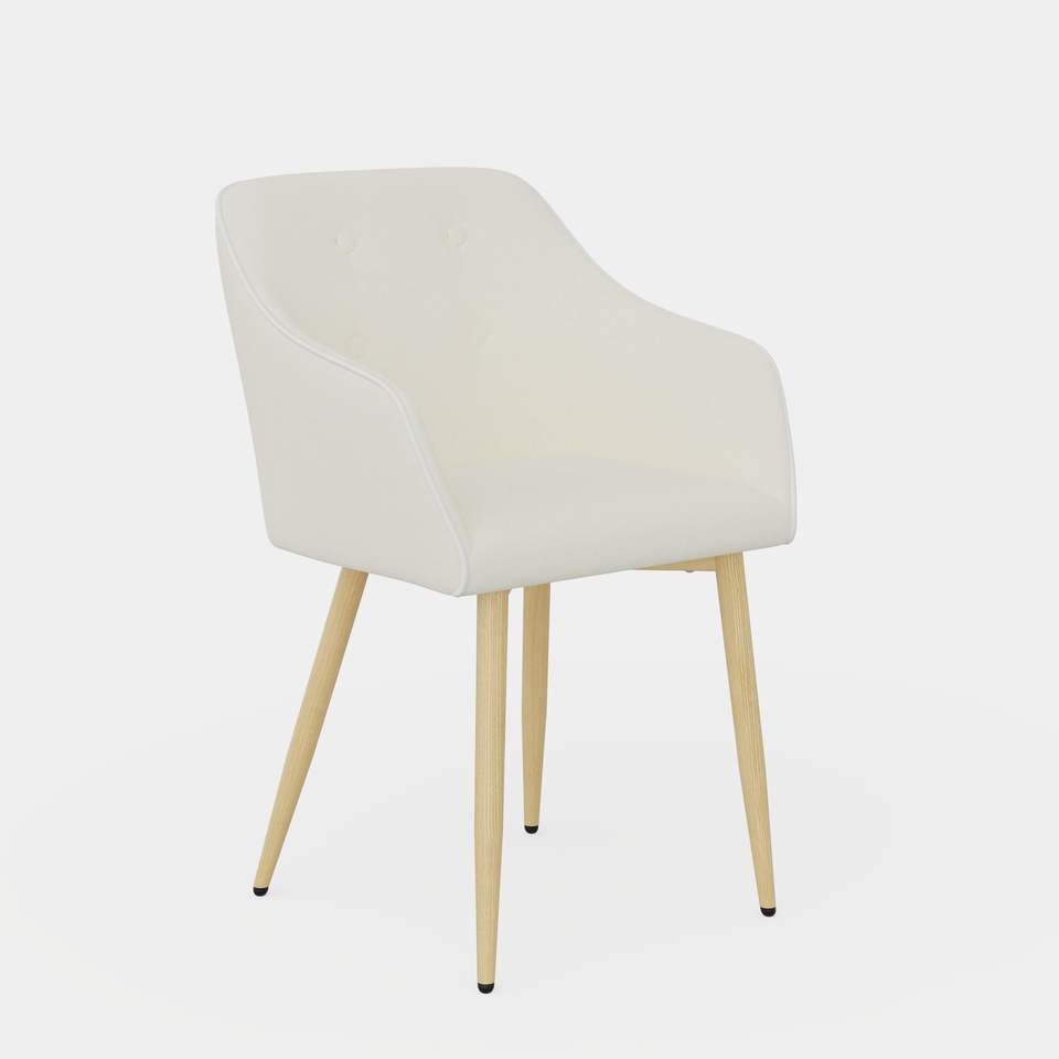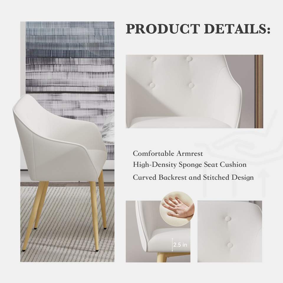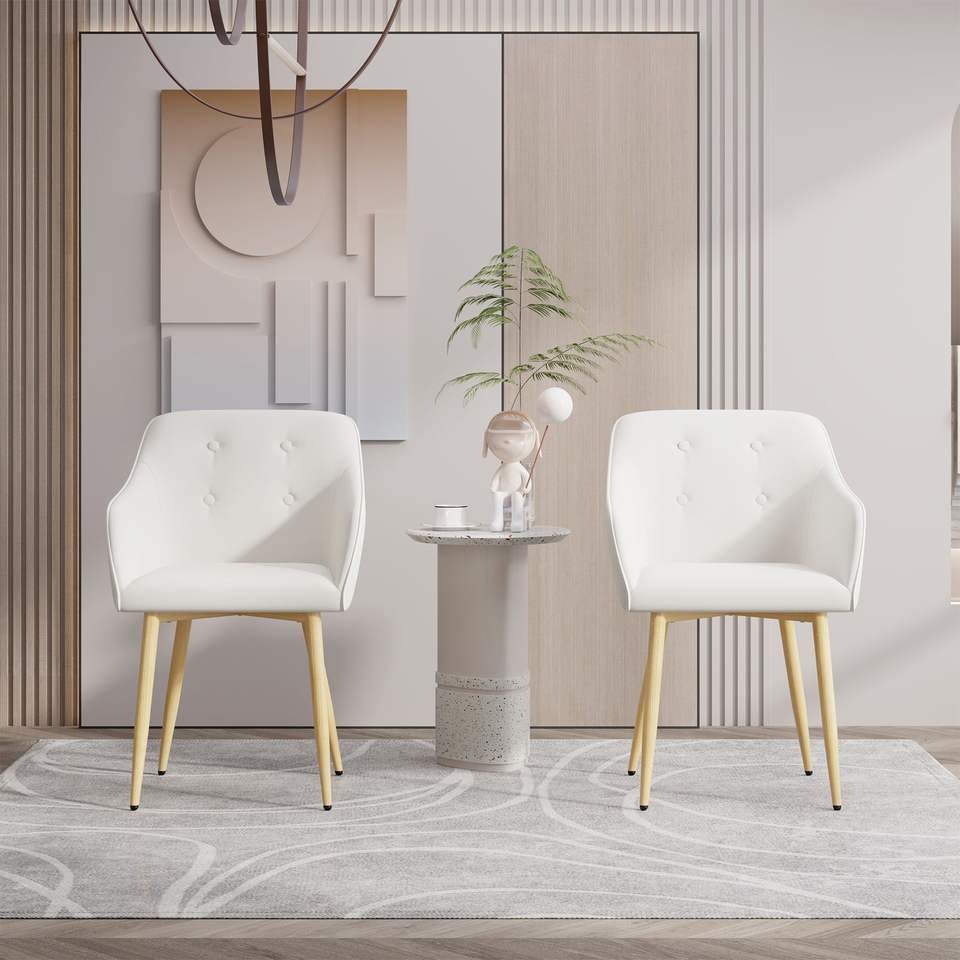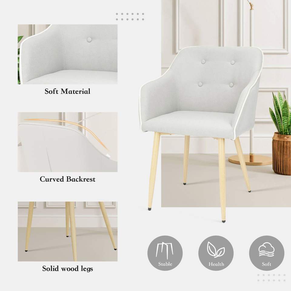 Mid-Century Modern 2-Pcs Fabric Dining Chair Set Wood Finished Metal Legs