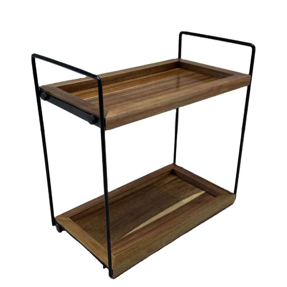 รถเข็นบาร์ไม้ 3 ชั้น สไตล์มิดเซ็นจูรี่โมเดิร์น ใช้เป็นโต๊ะกาแฟ โต๊ะข้างเตียง แท่นวางเครื่องเล่นแผ่นเสียง และรถเข็นเก็บของอเนกประสงค์