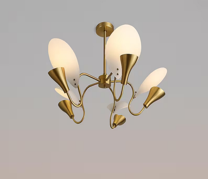 โคมไฟระย้าทรงสปุตนิก 5 แขน ทองเหลือง สไตล์มิดเซ็นจูรี่โมเดิร์น โคมไฟเพดานแบบเรโทร ไฟ LED ปรับความสว่างได้ โคมไฟตกแต่งบ้าน