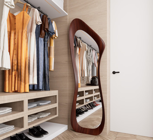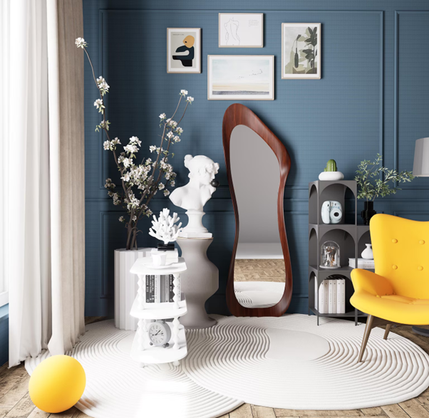 Kalatri กระจกติดผนังน้ำหนักเบาเป็นมิตรต่อสิ่งแวดล้อมทำด้วยมือทำจากไม้วอลนัทไม่สมมาตรสไตล์โมเดิร์นแบบไม่สมมาตร