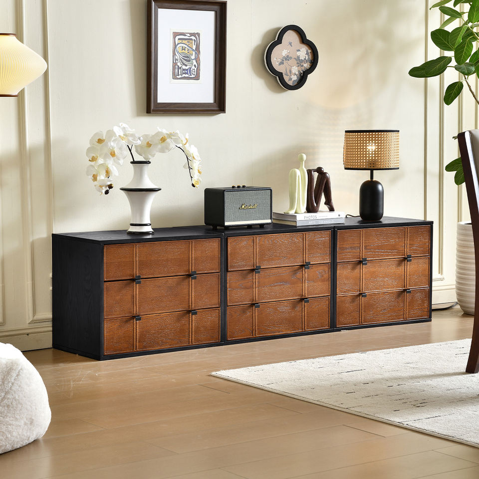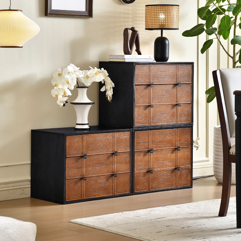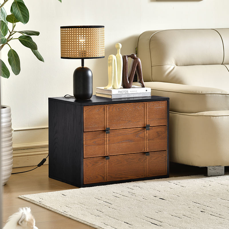 ตู้เก็บของข้างเตียงไม้จริงสไตล์โมเดิร์นกลางศตวรรษ รุ่นคาร์เมน สำหรับเฟอร์นิเจอร์บ้าน ลายตารางหมากรุกสไตล์เรโทร สามารถจับคู่และปรับเปลี่ยนรูปแบบได้