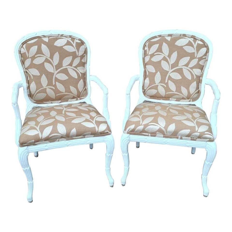 คำอธิบาย:เก้าอี้รับประทานอาหารที่ทันสมัยในช่วงกลางศตวรรษที่มีเบาะลายใบไม้