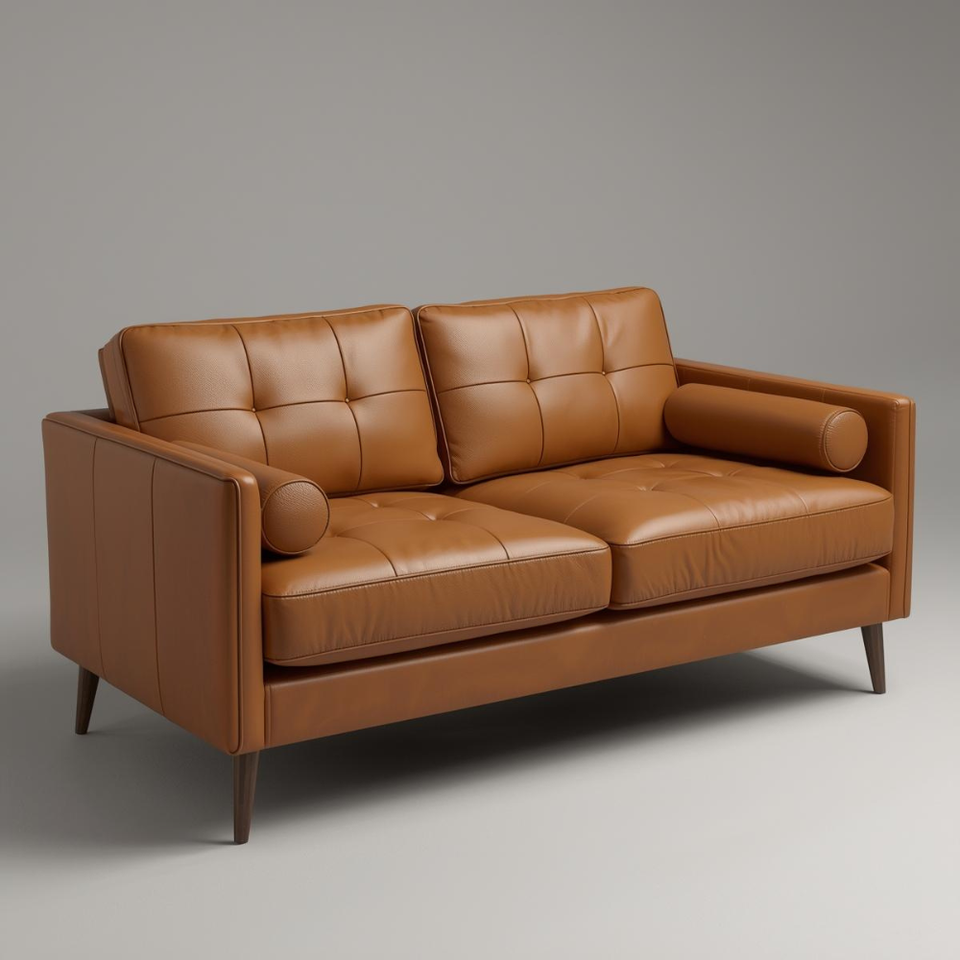 โซฟาหนังแท้สไตล์มิดเซ็นจูรี่โมเดิร์น ตกแต่งกระดุมด้านหลัง ผู้ผลิตขายส่งสำหรับเฟอร์นิเจอร์ห้องนั่งเล่นที่บ้าน