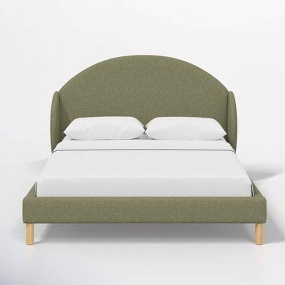 เตียงแพลตฟอร์มที่ทันสมัยในช่วงกลางศตวรรษพร้อมหัวเตียงหุ้มเบาะ-ผ้าสีเขียว