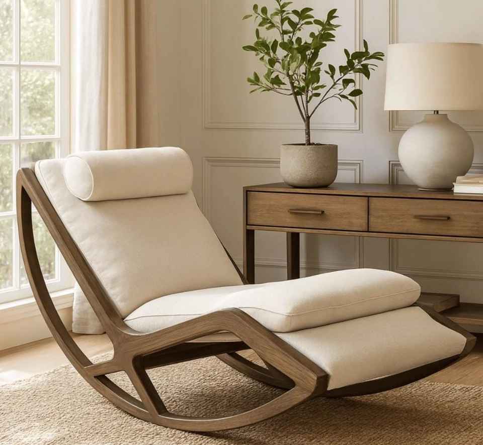 เก้าอี้โยกไม้ระแนงสไตล์โมเดิร์นกลางศตวรรษ | เก้าอี้นั่งสบายแบบ Ergonomic ทำด้วยมือ ทนทาน ใช้ได้ทั้งภายในและภายนอกอาคาร เหมาะสำหรับตกแต่งบ้าน