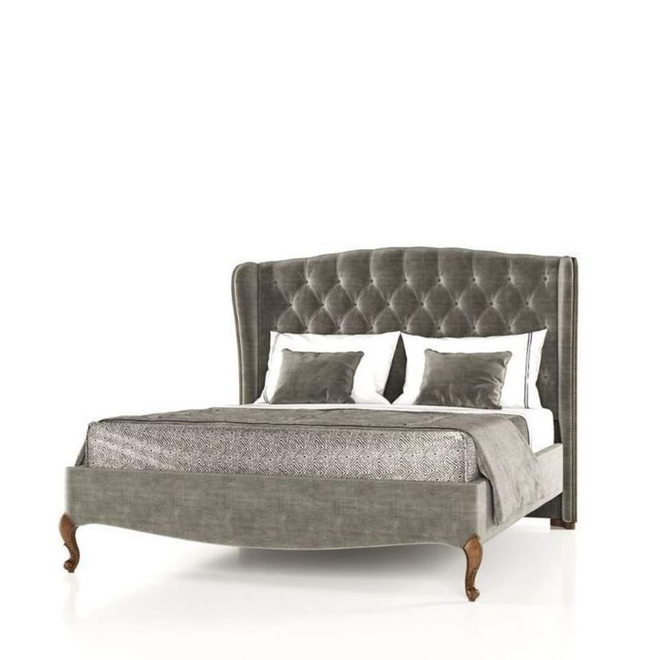 เตียงไม้เนื้อแข็งที่ทันสมัยในช่วงกลางศตวรรษหุ้มสีเทา