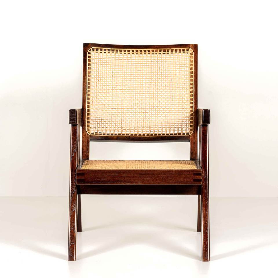 เก้าอี้เท้าแขนไม้จริงสไตล์โมเดิร์น พร้อมงานสานหวายธรรมชาติ
