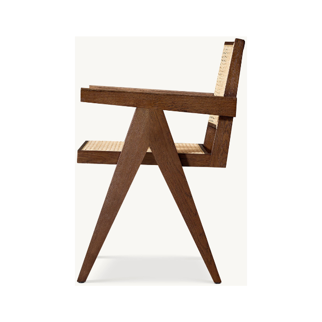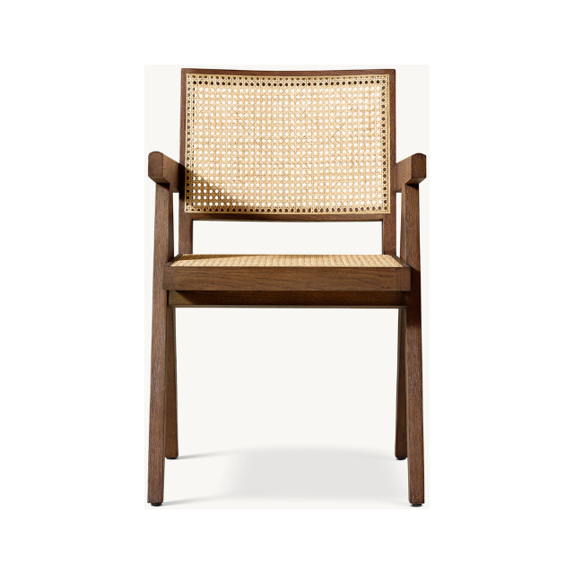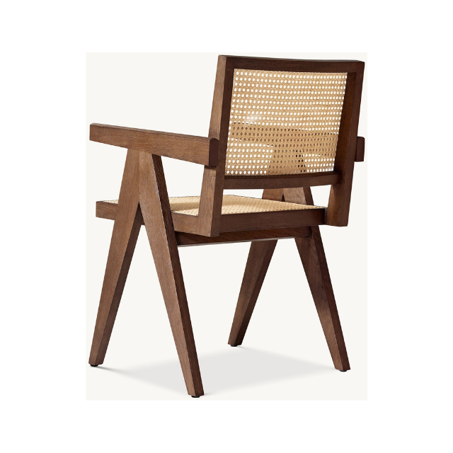 เก้าอี้รับประทานอาหารไม้เนื้อแข็งที่ทันสมัยกลางศตวรรษพร้อมพนักพิงและที่นั่งหวาย
