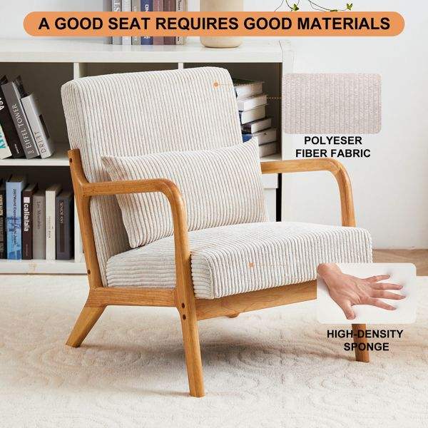 เก้าอี้พักผ่อนทรงโมเดิร์นกลางศตวรรษ โครงไม้เนื้อแข็ง พร้อมหมอนอิง สำหรับห้องนั่งเล่นและอ่านหนังสือ เก้าอี้หุ้มเบาะ