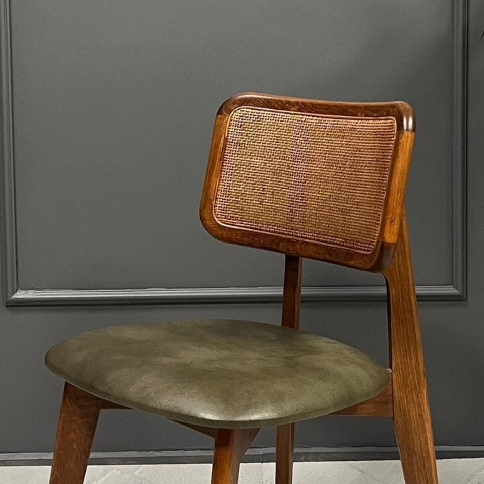 เก้าอี้รับประทานอาหารไม้วอลนัททันสมัยกลางศตวรรษเก้าอี้หวายหุ้มเบาะหนังเทียมสำหรับห้องนั่งเล่นห้องนอนโรงแรม