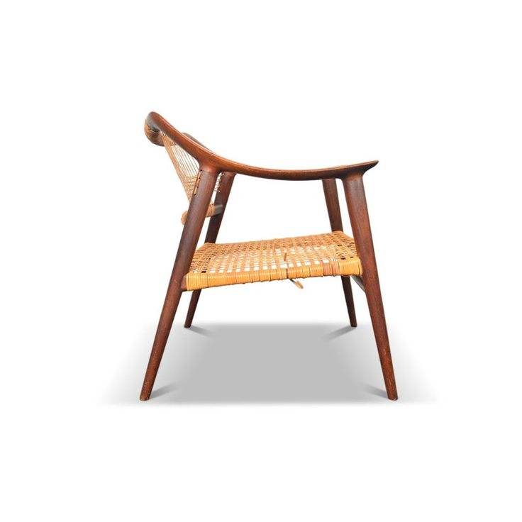 เก้าอี้ทานข้าวทรงวิชโบนสไตล์มิดเซ็นจูรี่โมเดิร์น ทำจากไม้วอลนัทแท้และเชือกหวายทอมือ ผิวสัมผัสแบบธรรมชาติ