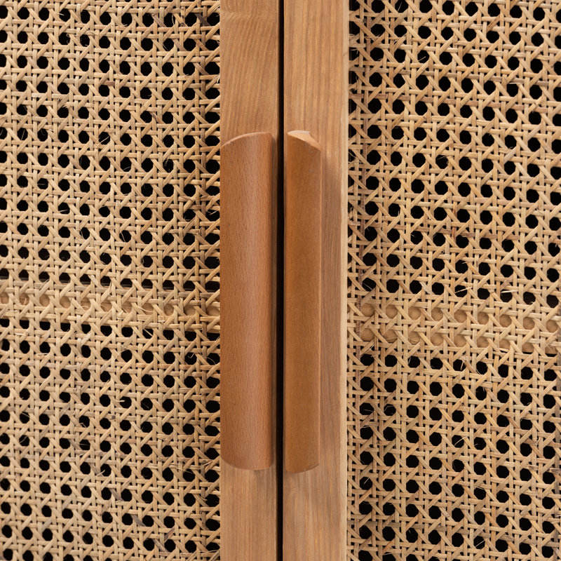 ตู้เก็บไม้และหวาย2ประตูสไตล์โมเดิร์นสำหรับห้องนั่งเล่นกลางศตวรรษ