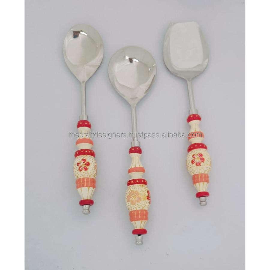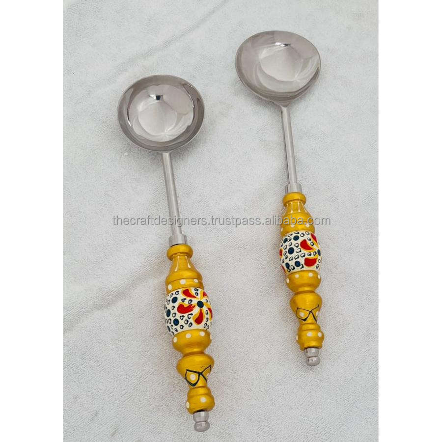 Mid Century Style Cutlery Set Mirror Polished Stainless Steel Hand Painted Handles Spoons Set Fancy Dessert Tea Spoon Set of 5