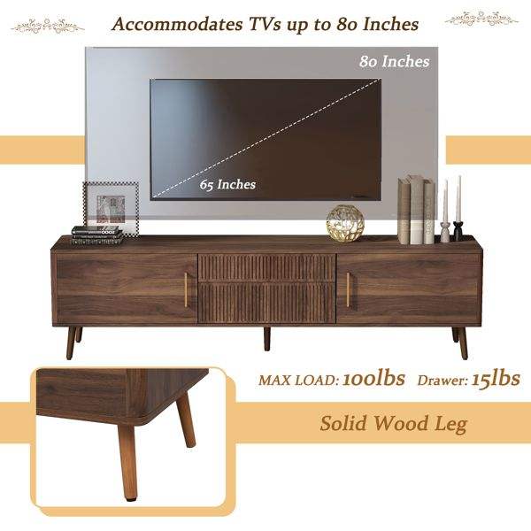 ขาตั้งทีวีสไตล์มิดเซ็นจูรี่พร้อมลิ้นชัก 2 ช่อง โต๊ะคอนโซลสำหรับทีวีขนาดไม่เกิน 80 นิ้ว คุณสมบัติเด่น คือ ความบันเทิง