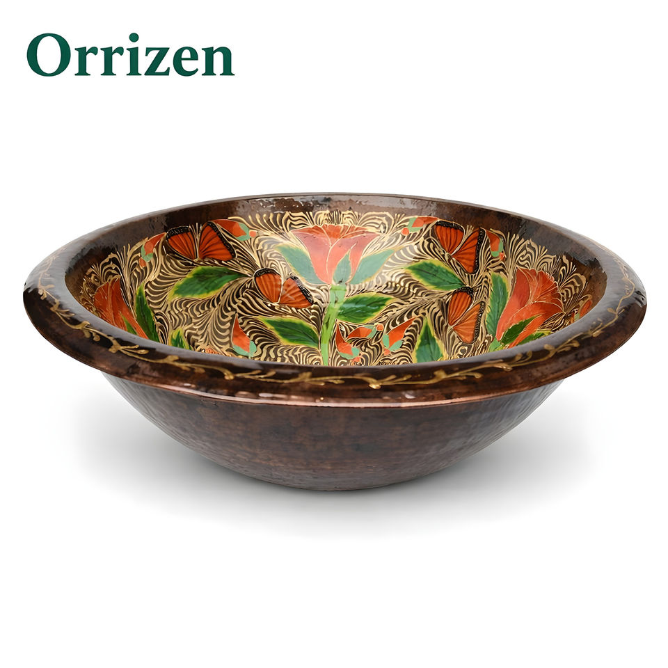 อ่างล้างจานแบบพกพาน้ำหนักเบารูปทรงกลมทองแดงลายดอกไม้สไตล์วินเทจยุคกลาง