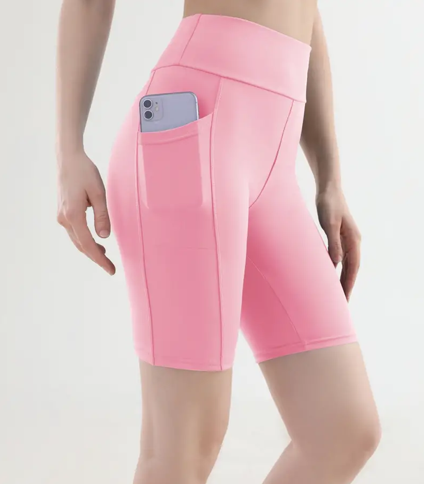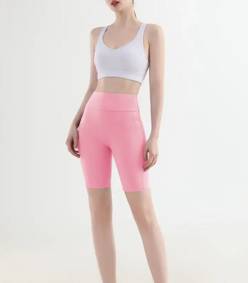 กางเกงขาสั้นปั่นจักรยานสำหรับผู้หญิงเอวสูงแห้งเร็วไร้รอยต่อระบายอากาศได้ดีดีไซน์ความยาวปานกลาง