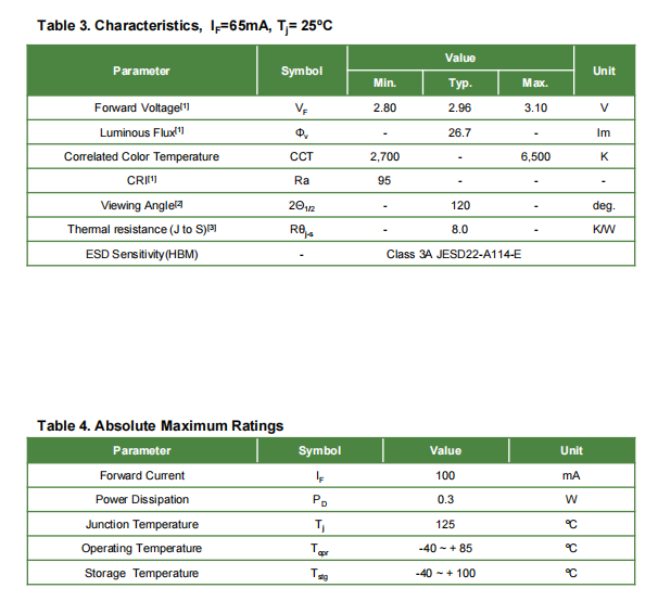 อุณหภูมิสี (CCT):2700K, 3000K, 3500K, 4000K, 5000K, 5700K, 6500K