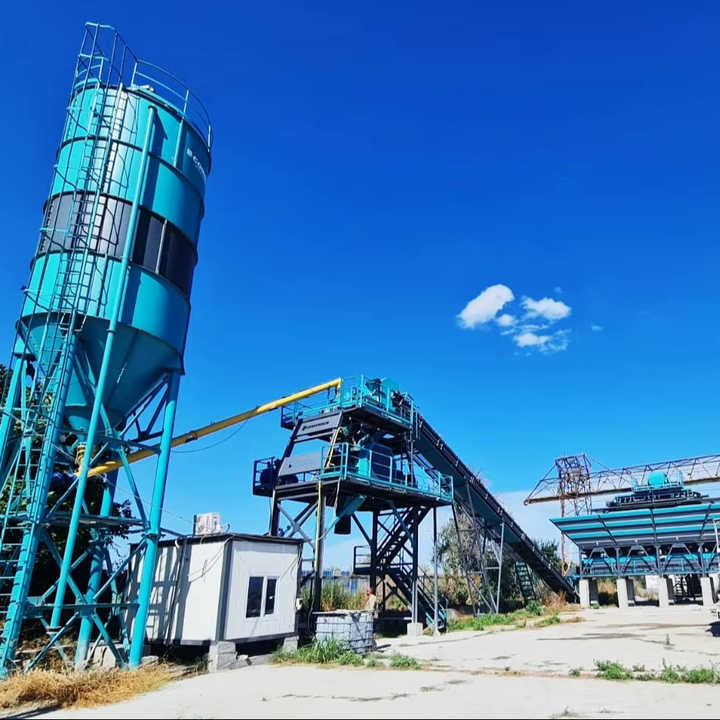 เครื่องผสมคอนกรีต60แบบอยู่กับที่พร้อมกระปุกเกียร์ PLC แกนหลักซีเมนต์สายการผลิตที่แม่นยำแกนเครื่องยนต์