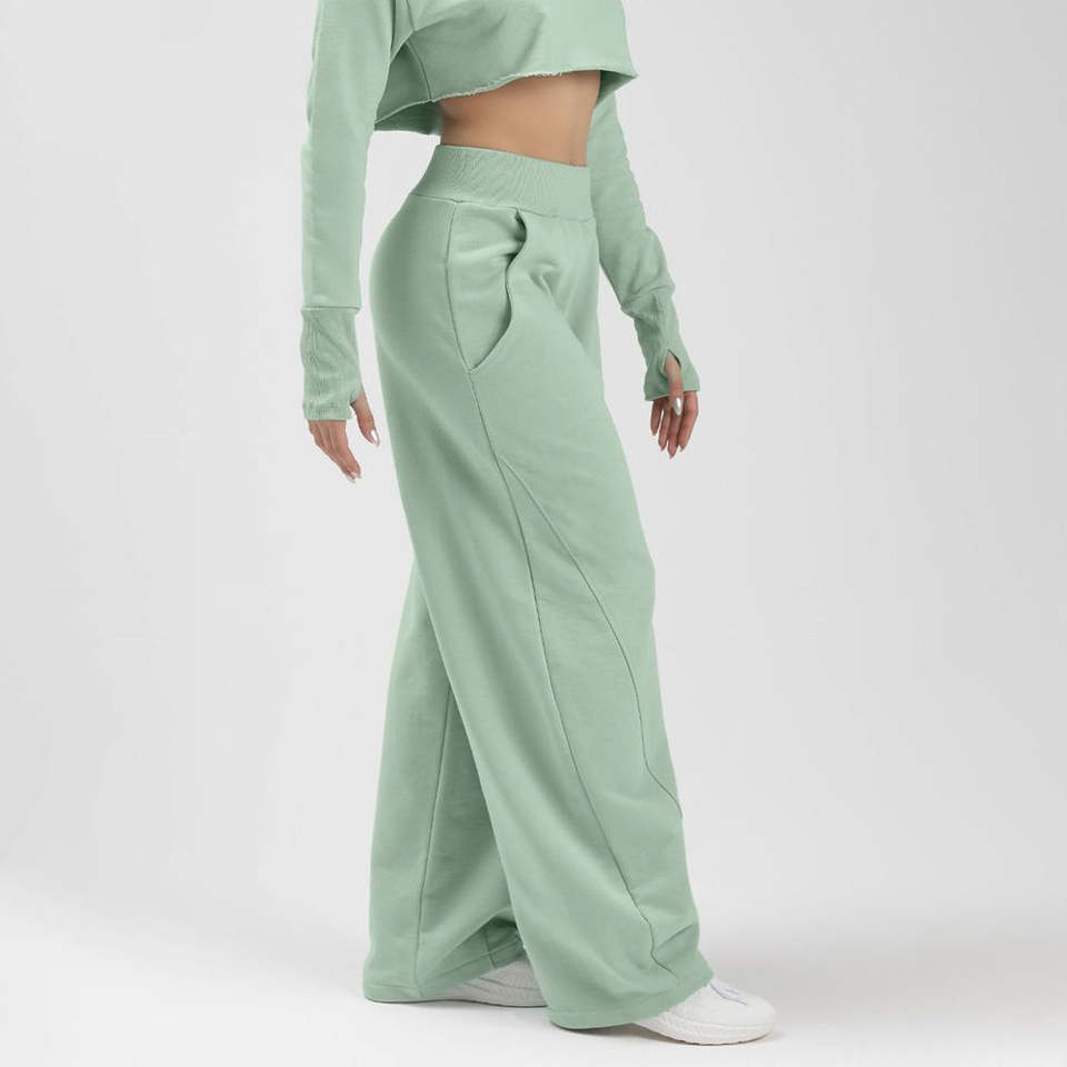 กางเกงวอร์มเอวกลางผู้หญิง ทรงหลวม ผ้าฝ้ายกันหนาว ระบายอากาศ กันลม ขากว้าง สไตล์สตรีทแวร์ ฤดูหนาว ลำลอง ทรงหลวม