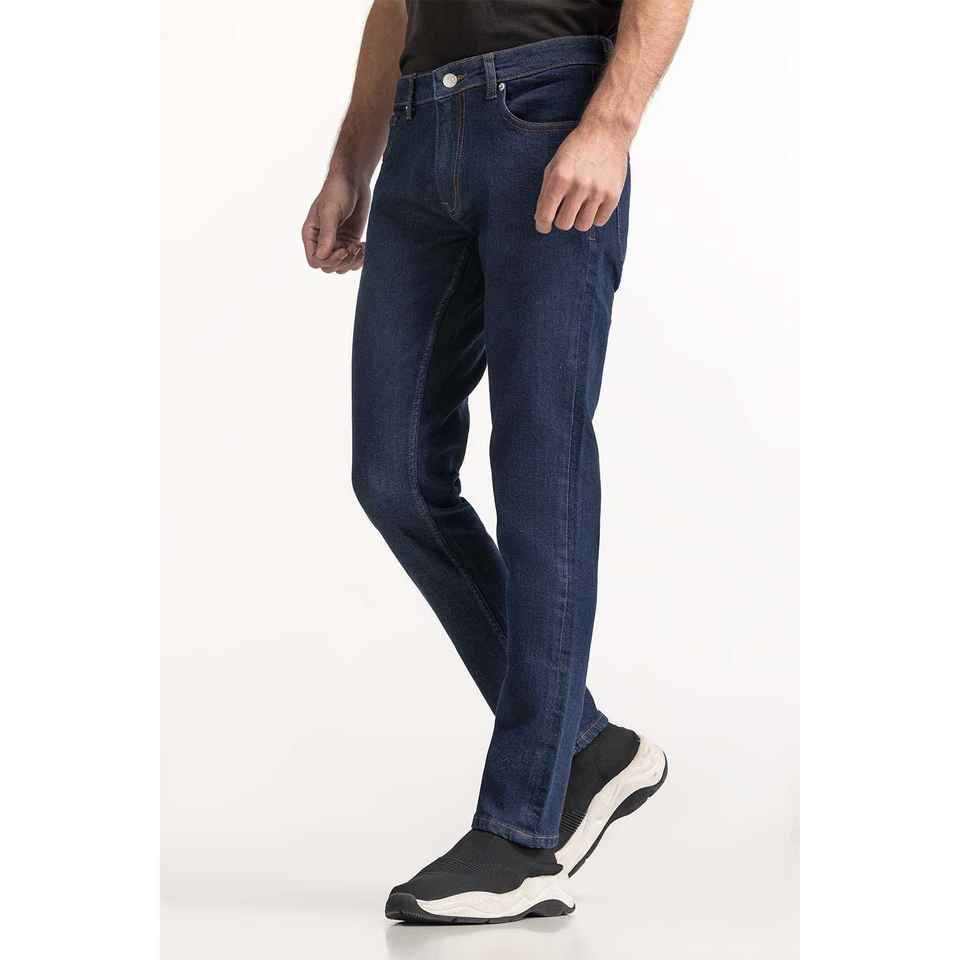 กางเกงยีนส์ทรงตรงเอวกลางสไตล์วินเทจ รุ่น MN-JNS-WS24-020 สีเดนิมเข้ม ล้างสีแบบวินเทจ สำหรับฤดูใบไม้ร่วงและฤดูหนาว