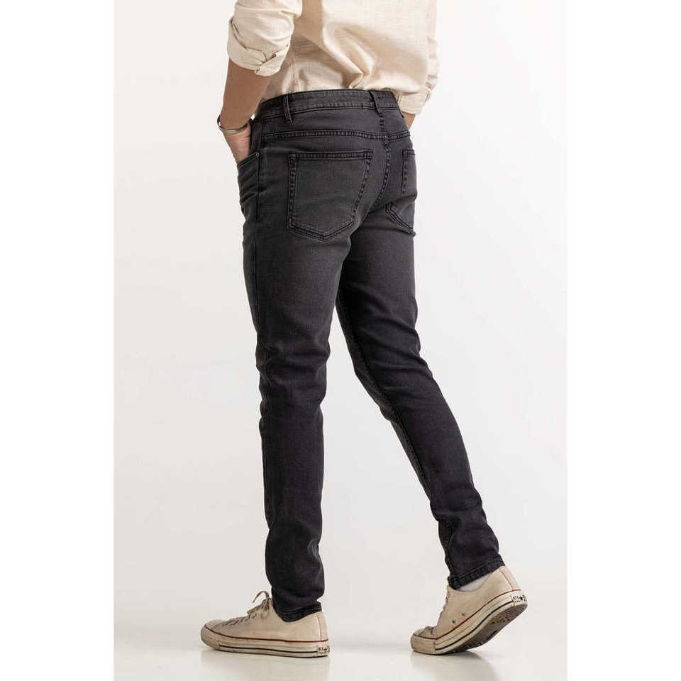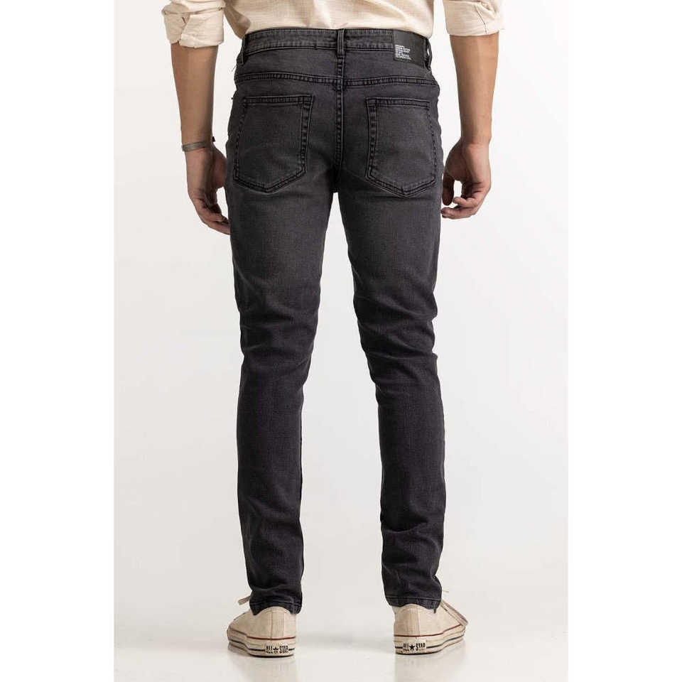 กางเกงยีนส์ทรงตรงเอวกลางสไตล์วินเทจสีชาร์โคล ODM ผ้ายีนส์ฟอกหินพร้อมลายปะติด คอลเลคชั่นฤดูหนาว