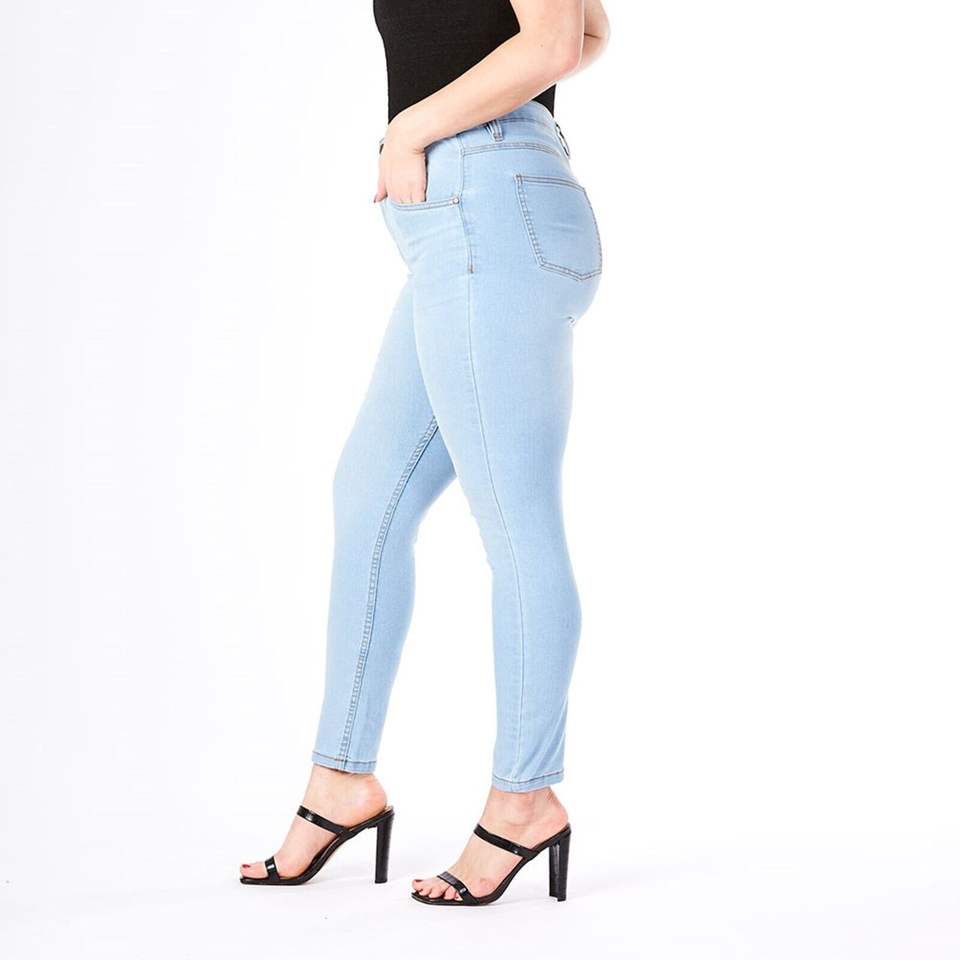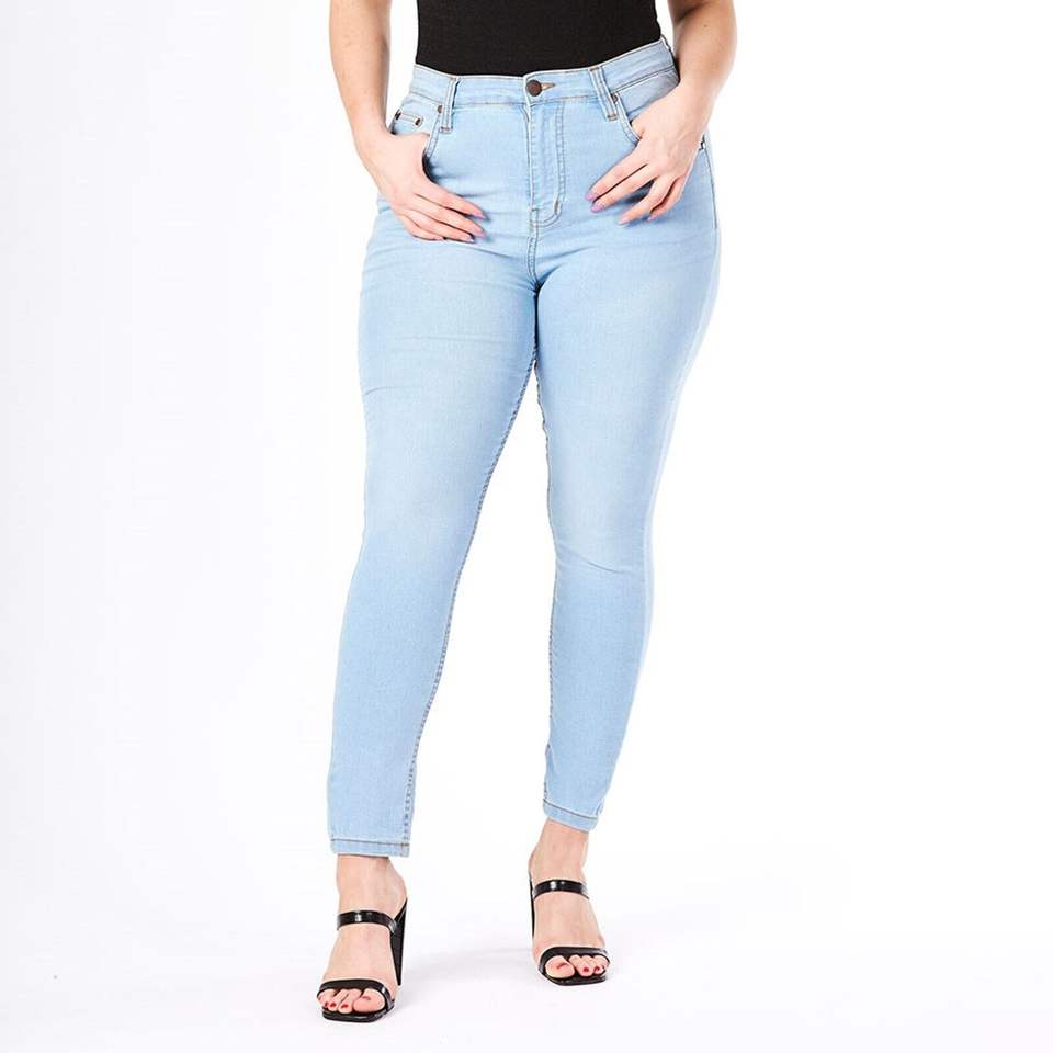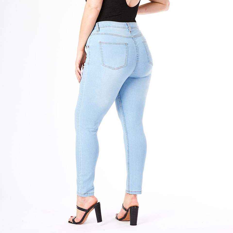 กางเกงยีนส์คาปรีสีฟ้าอ่อนเอวกลางสำหรับผู้หญิง กางเกงยีนส์ลำลองฤดูร้อนแบบยืดได้ ระบายอากาศได้ดี ลุคคลาสสิค ซักง่าย สไตล์เซ็กซี่ สตรีทแวร์