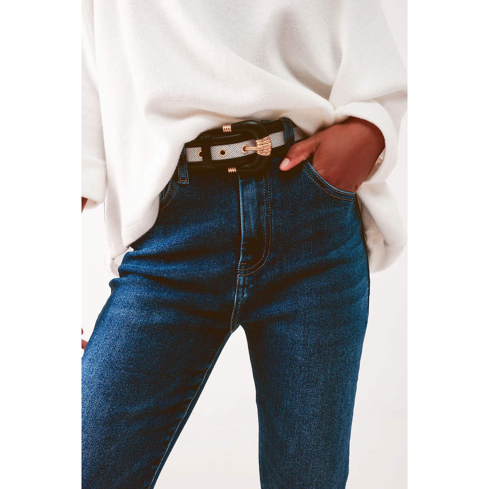 กางเกงยีนส์เอวสูงทรงสกินนี่ ไซส์ XL ผ้ายีนส์ยืด ระบายอากาศได้ดี ซักได้ ทรงบอยเฟรนด์หรือทรงดินสอ