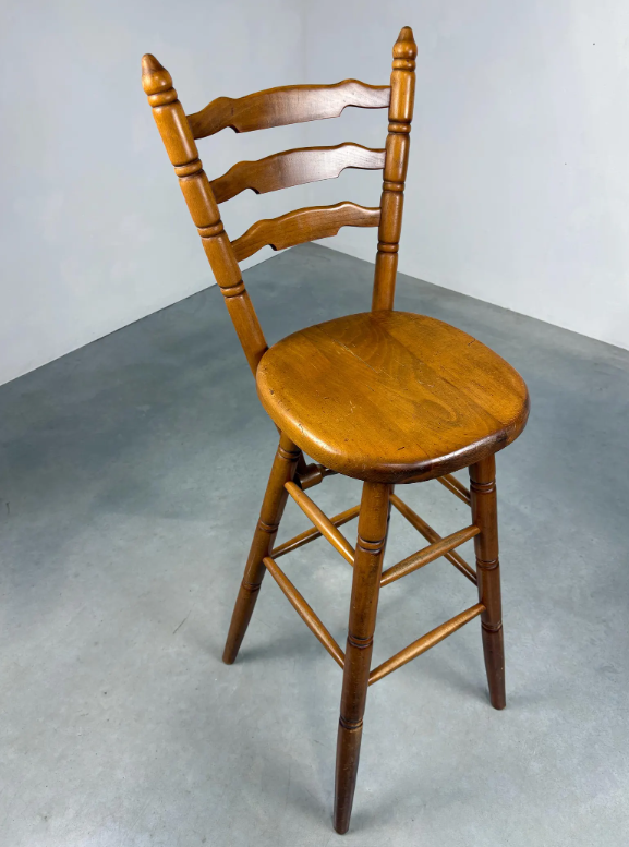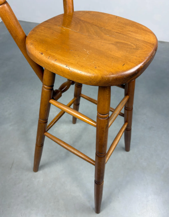 เก้าอี้บาร์สไตล์โมเดิร์นกลางศตวรรษ พร้อมพนักพิงไม้โค้งมนและเบาะนั่งบุนวม เหมาะสำหรับการนั่งในบาร์ที่บ้านอย่างมีสไตล์ จากอินเดีย