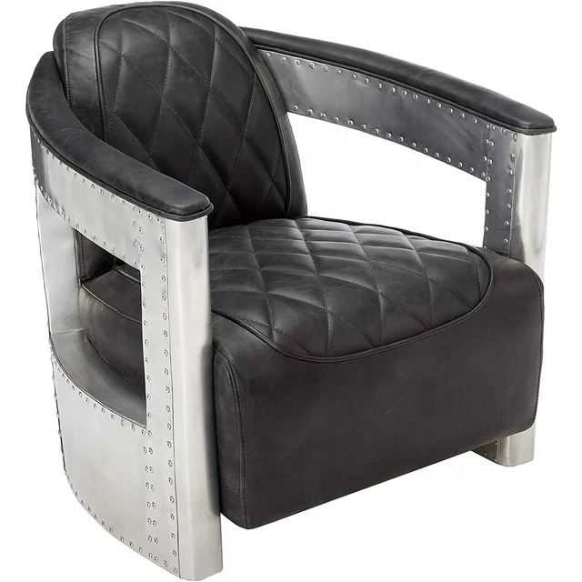 เก้าอี้หนังแท้หุ้มหนังแท้สำหรับศตวรรษกลางเก้าอี้นักบินวัสดุไม้เครื่องบินโซฟาสำหรับบ้านสำนักงานห้องนั่งเล่นอุตสาหกรรมวิลล่า