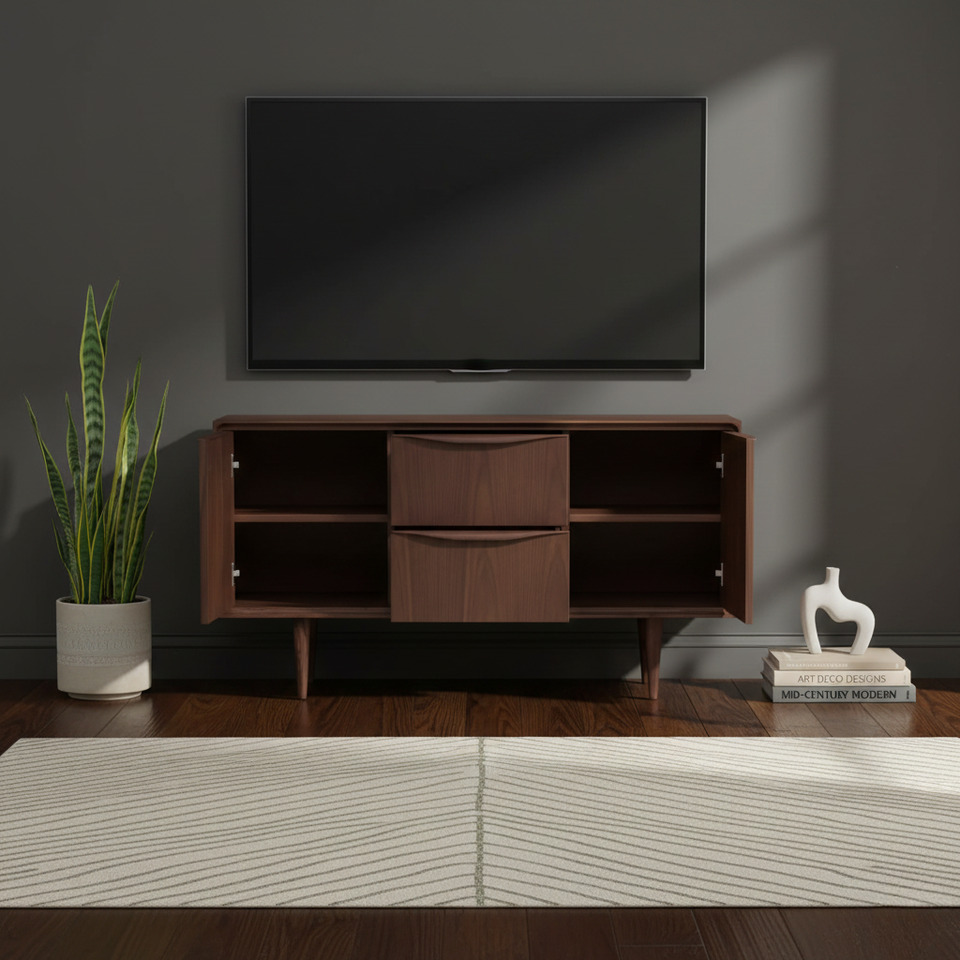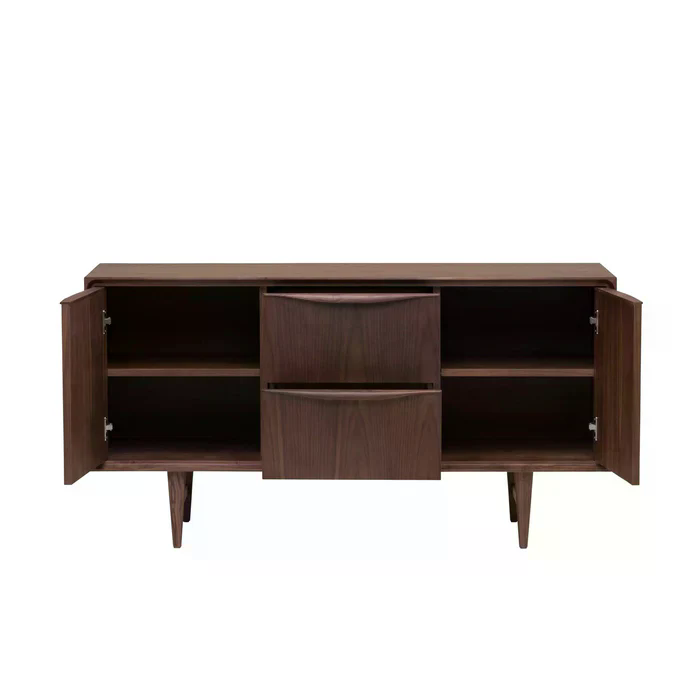 ตู้ข้างโซฟาสไตล์โมเดิร์นกลางศตวรรษ ทำจากไม้ MDF สีวอลนัท พร้อมแผ่นวีเนียร์วอลนัท P2 จากเวียดนาม ขนาด 1x20GP สำหรับห้องนั่งเล่น จัดส่งทางเรือจากฮ่องกง
