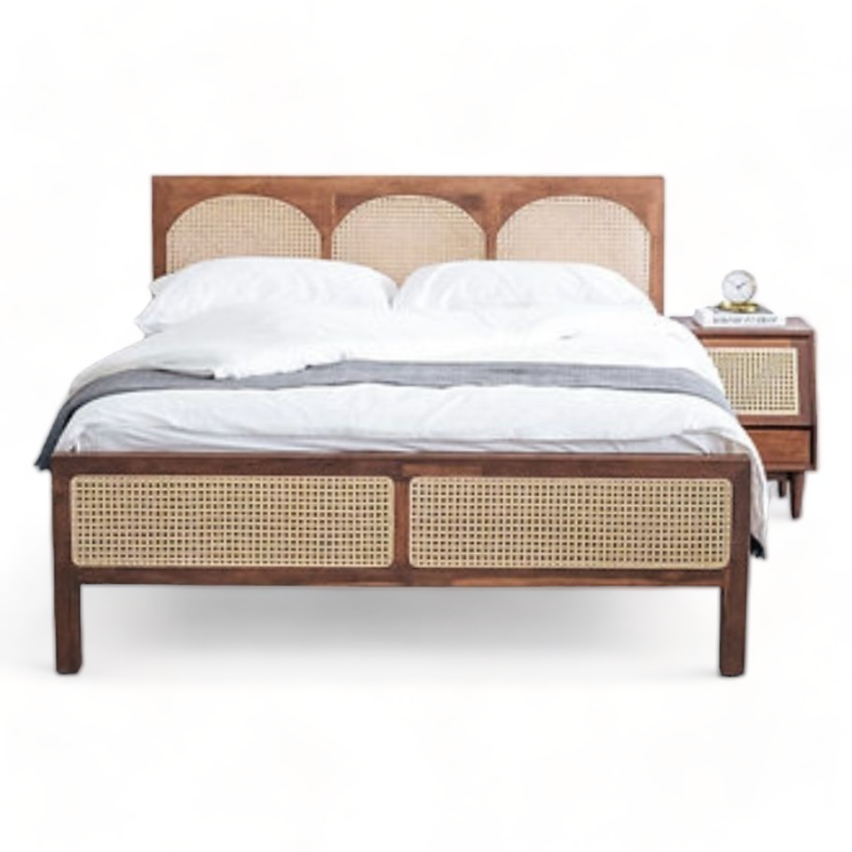 Keyword:Queen and King Size Wooden Bedroom Beds with Rattan Headboard