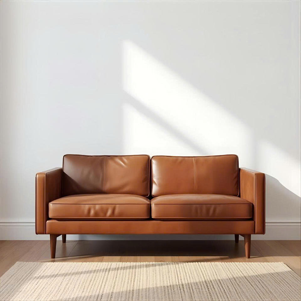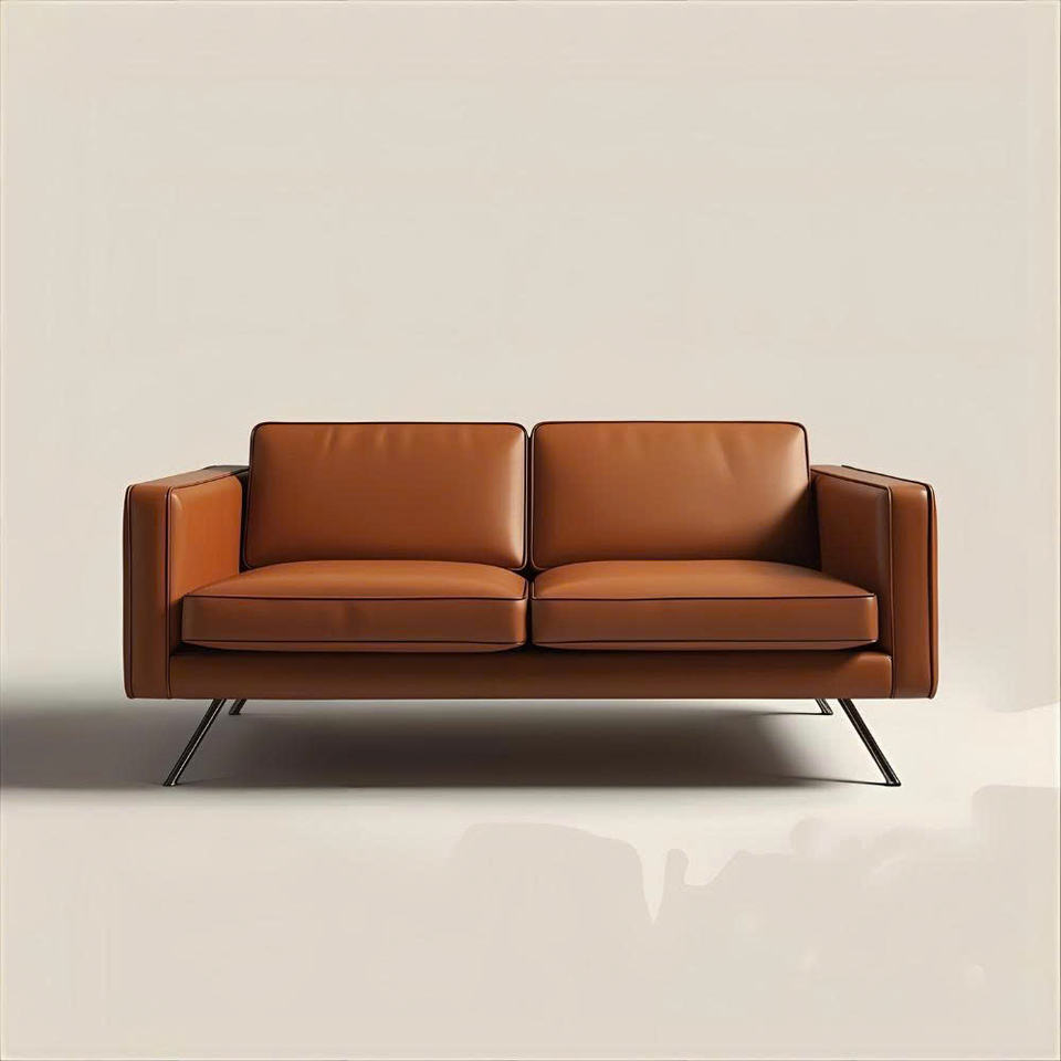 โซฟาเบดสองที่นั่งสไตล์มิดเซ็นจูรี่โมเดิร์น ผลิตจากหนังแท้ ไม้ยางพารา และไม้อัด เป็นมิตรกับสิ่งแวดล้อม เหมาะสำหรับห้องนั่งเล่น โรงเรียน และห้องทำงาน - ระดับหรูหรา