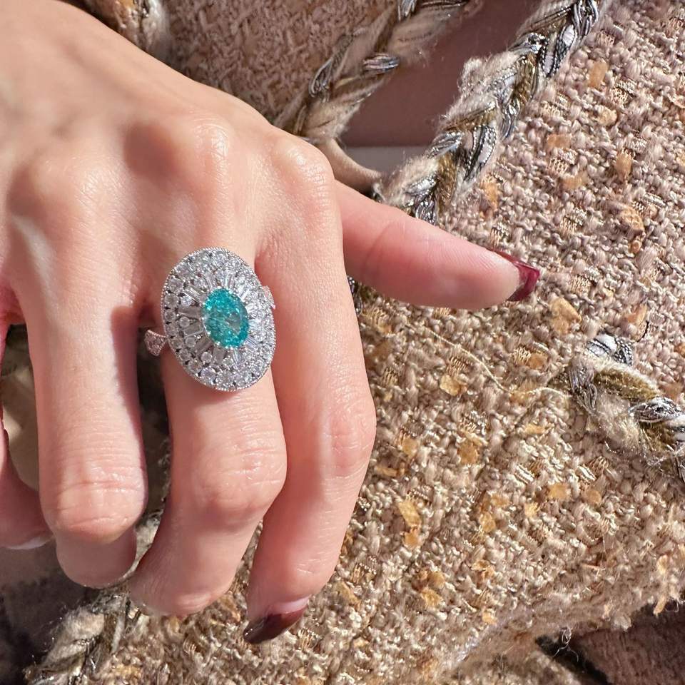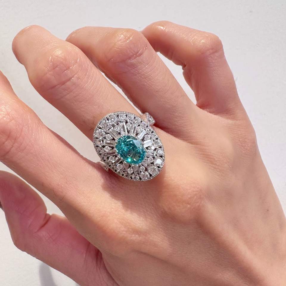 แหวนทรงไข่สไตล์โบราณกลางศตวรรษ พาลัยบา ซี บลู เงินแท้ S925 แหวนทรงรีหรูหราทันสมัย