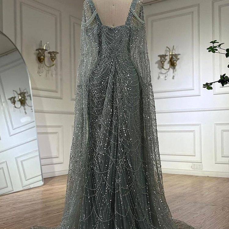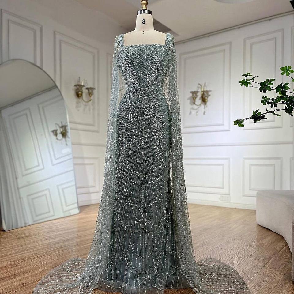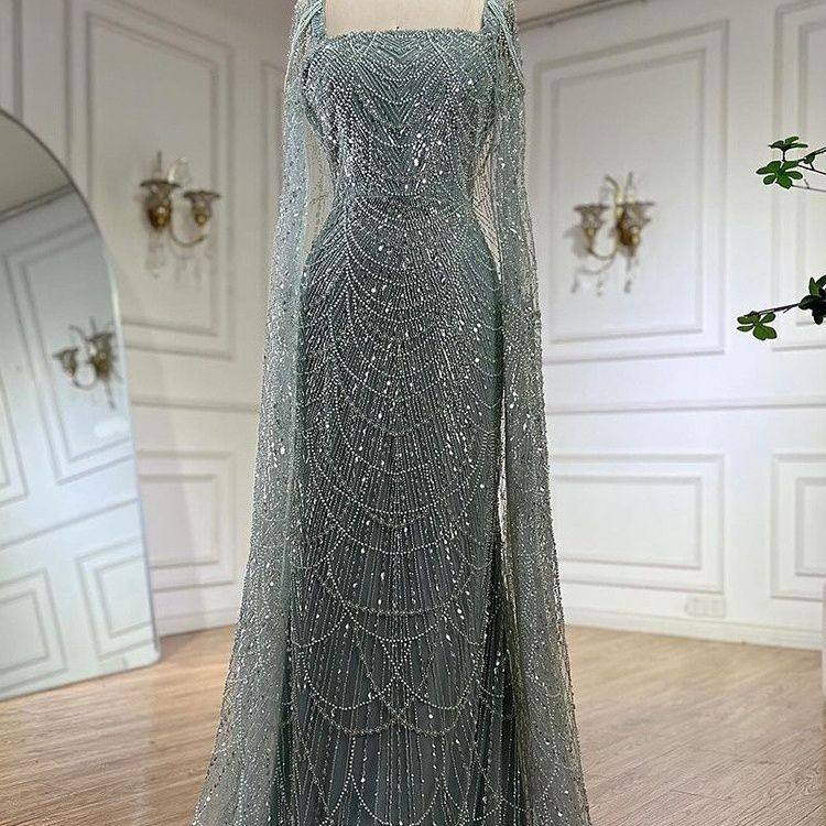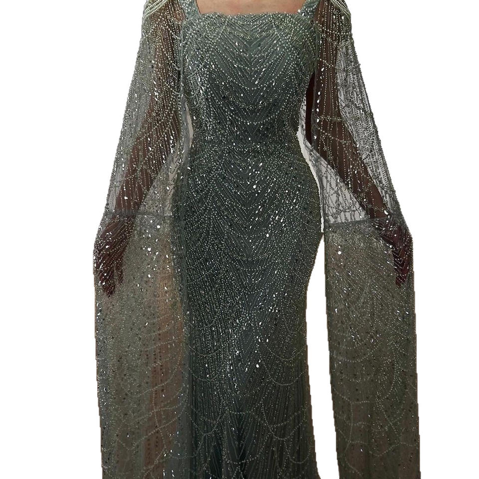 ชุดราตรีทรงเมอร์เมดแขนระบายสีเขียวมรกตสำหรับงานอุตสาหกรรมหนักในตะวันออกกลาง ดีไซน์หรูหราสง่างาม เหมาะสำหรับพิธีกรงานประชุมประจำปีหรืองานเลี้ยง