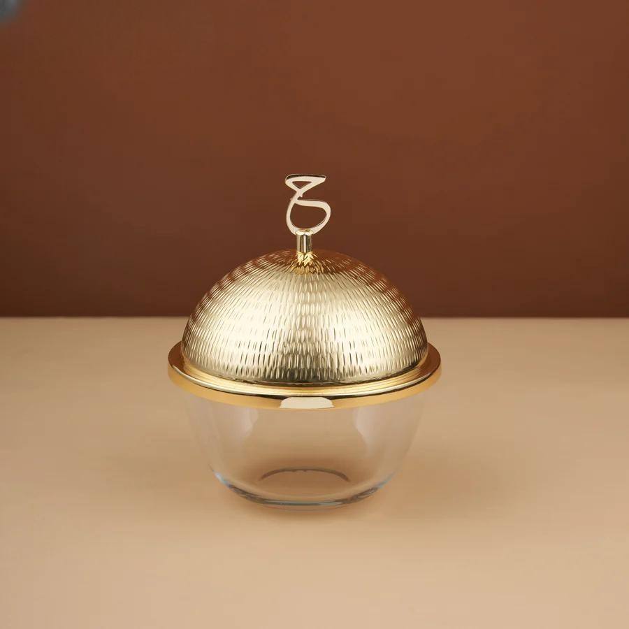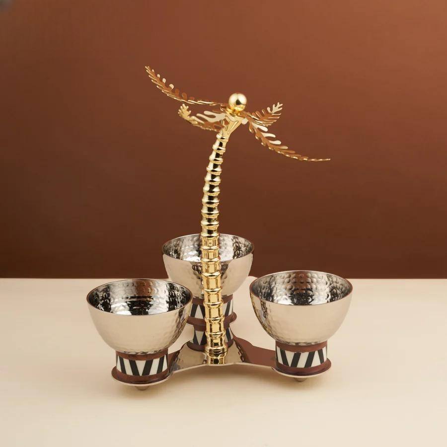 Khajoor ชุดหม้อสองใบพร้อมฝาและฐานเป็นโลหะสีทองสำหรับเซิร์ฟช็อคโกแลตเดทแบบอาหรับสำหรับเซิร์ฟเวอร์ในบ้าน